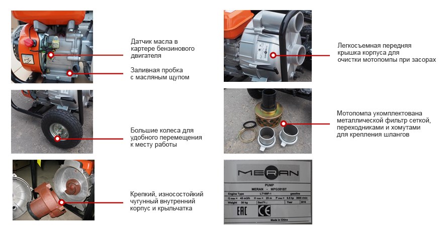 Бензиновые мотопомпы MERAN для средне-загрязненных вод до 45 м3/ч