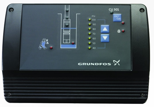 Grundfos CU 301 позволяет осуществлять регулирование постоянного давления на основании полученных от датчиков сигналов, вводить установочные значения давления гидросистемы и контролировать состояние рабочей и аварийной индикации.